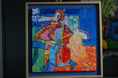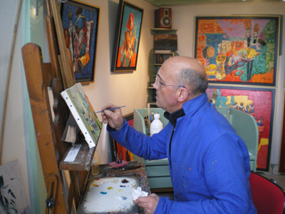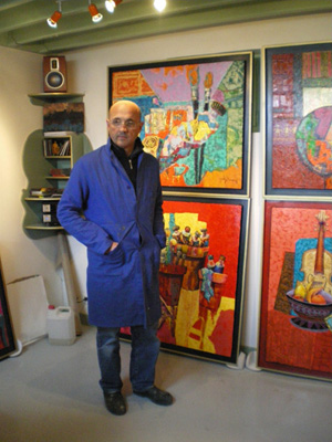 Si je dois donner une définition actuelle de mon travail, cela se résumerait ainsi: Je joue de la peinture, et je peins de la musique. La musique m'accompagne toujours quand je peins, même si le support se compose d'une corbeille de fruits, d'une chaise, d'un carton, d'une planche de bois… Je ressens physiquement cette présence comme quelque chose d'essentiel, mais indéfinissable. Quand je regarde les hommes jouer de la musique cela me rassure un peu.